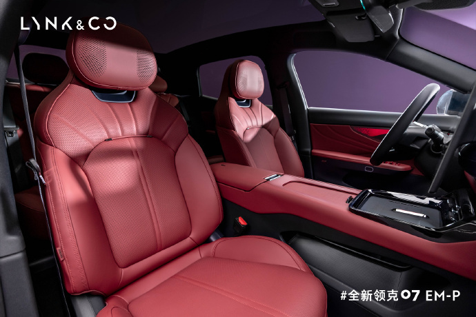 本次发布的领克07 EM-P,在颜色搭配上大胆创新,推出了璃光紫与极光银两款全新车身颜色,为消费者提供了更多个性化选择。同时,内饰方面也引入了暗影红与日光米两种全新配色,营造出更加温馨舒适的驾乘空间。
